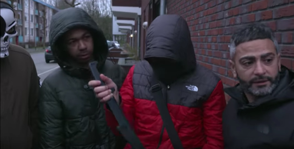 De jongen, die tijdens het interview omringd is door andere jongeren, draagt het mes volgens eigen zeggen bij zich uit zelfbescherming. "Voor protect tegen vijanden", vertelt hij journalist Danny Ghosen.