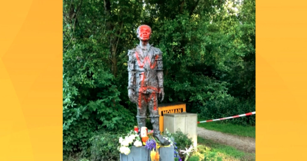 Bizar, wij waren er zojuist getuige van dat het beeld van Elieser net beklad in Ouderkerk werd beklad met rode verf WLM. @AT5 @parool pic.twitter.com/ruT2JFFCkm