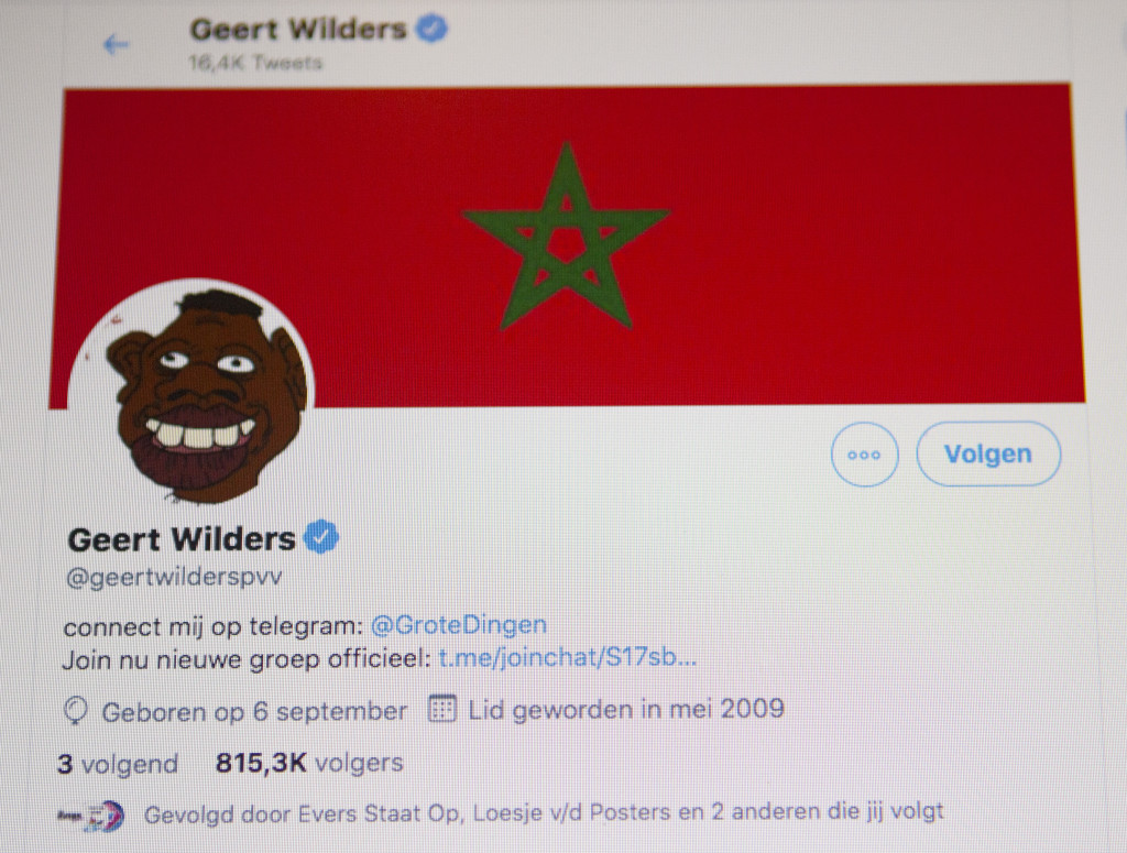 Ook de profielfoto van Wilders werd veranderd in een karikaturale afbeelding van een zwarte man. Zijn header werd vervangen door een Marokkaanse vlag.