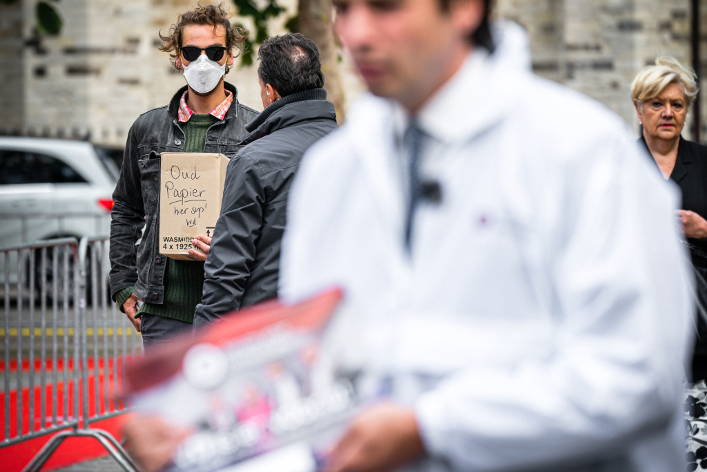 Van den Elshout, een filmmaker, hield tijdens zijn protest een kartonnen doos vast. Hierop stond ‘Oud papier hier svp bvd’ geschreven. Deze doos was bedoeld voor de folders die Baudet uitdeelde.
