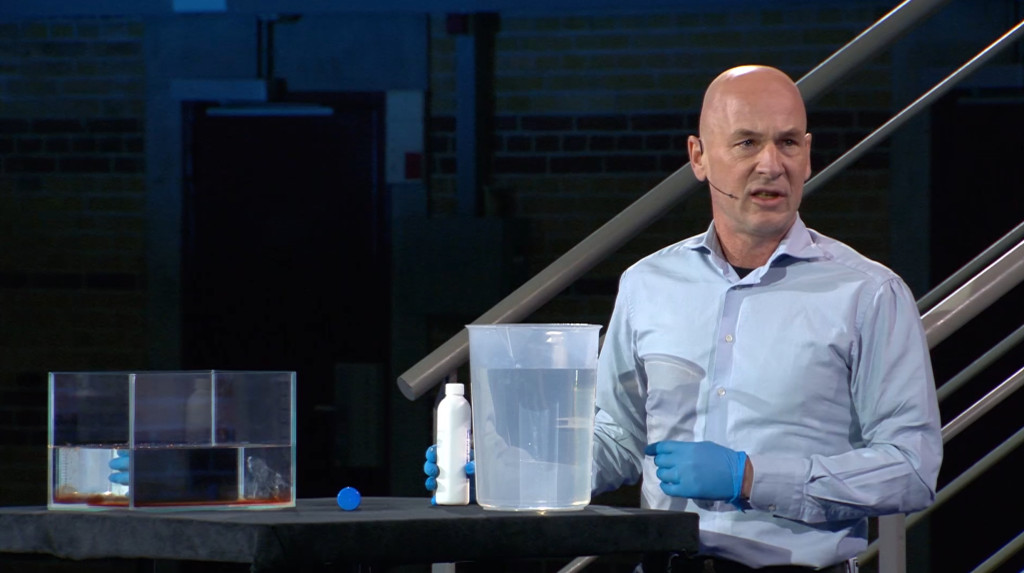 De rode bloedlichaampjes bevatten hemoglobine," legt Eversdijk uit. "Hemoglobine bevat weer ijzer, en ijzer is de katalysator in deze reactie. Als luminol in contact komt met ijzer gaat het licht uitstralen door een chemische reactie."