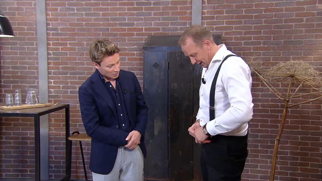 Vol energie probeert Hans zijn product bij de Dragons aan te prijzen. En om zijn prestaties te bevorderen heeft hij ook zich eigen product aan als hij zijn product probeert te verkopen. Voor Hans is het geen probleem om aan presentator Sander Schimmelpenninck te bewijzen dat hij zijn eigen product draagt. “Ik ga de strijd volledig aan.”