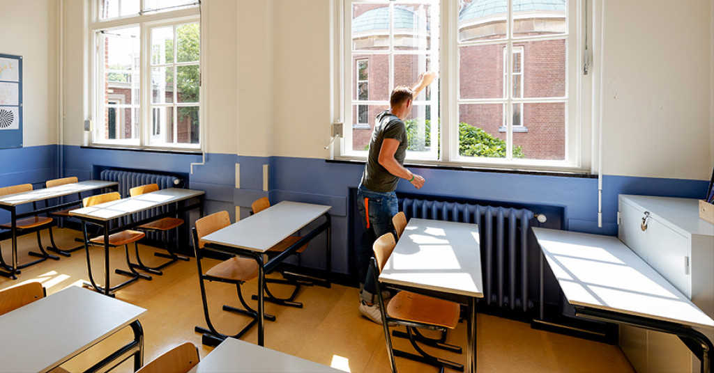 Middelbare scholen adviseert hij dan ook om leerlingen 1 meter afstand van elkaar te laten houden. "Die afstand is praktisch werkbaar in klassen. Zeker als leerlingen een vaste buddy krijgen voor wie die afstand niet geldt, zoals je ook in de horeca samen met een bekende aan een tafeltje mag zitten." Ook kunnen mondkapjes volgens hem een oplossing zijn voor plekken waar de afstand niet bewaard kan worden.
