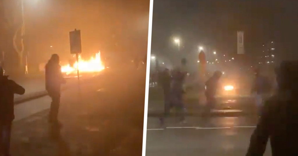 Een grote groep jongeren had zich verzameld bij het incident. Onder begeleiding van de ME is de brand uiteindelijk geblust.