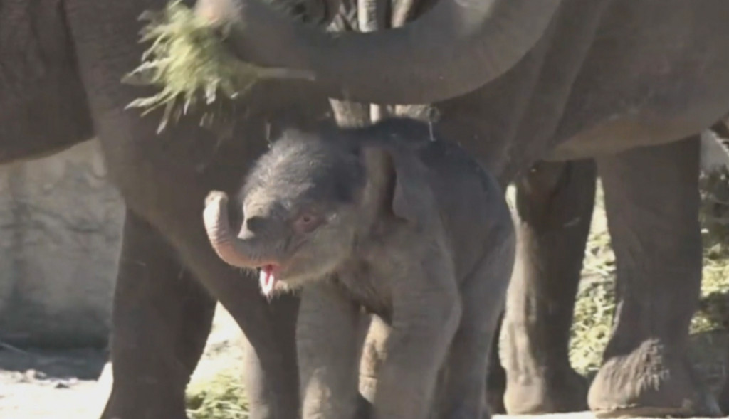 VIDEO: Pasgeboren olifantje mag door mooie weer eerder naar buiten