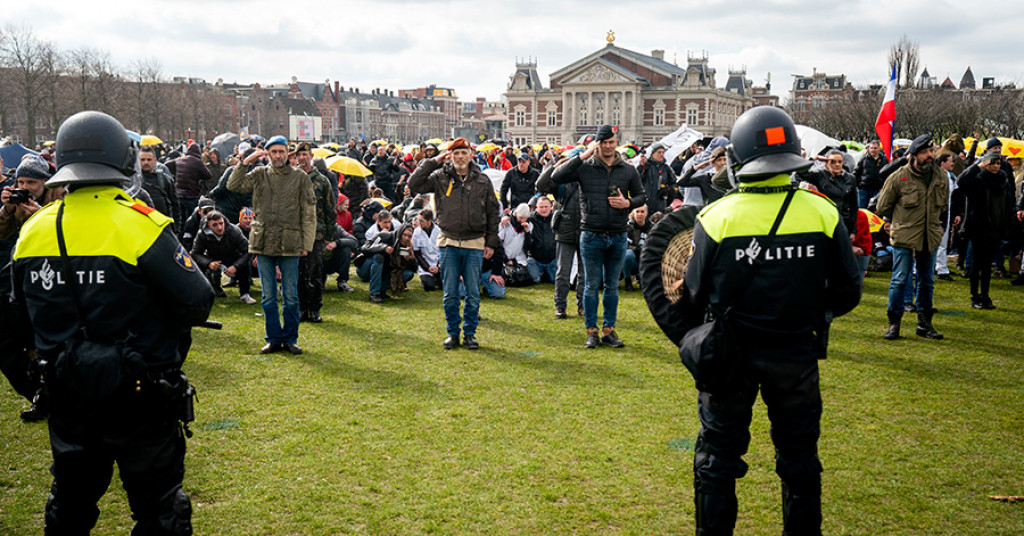 Het Museumplein is inmiddels leeg. De groep zette zich in beweging nadat de politie meldde dat iedereen zou worden aangehouden. Op het moment dat de eerste betogers werden opgepakt, liepen honderden personen in de richting van de Van Baerlestraat. Ze waren op het Museumplein bijeengekomen om te demonstreren tegen de coronamaatregelen. Aangezien het protest niet was aangemeld, werd het verboden en greep de politie in.
