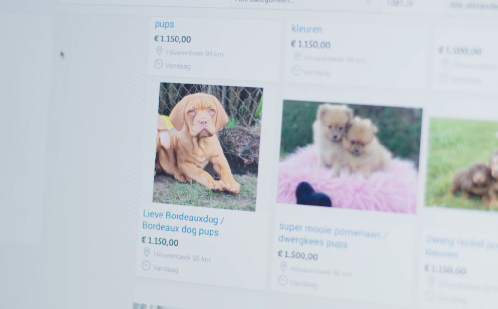De pups worden vaak te koop aangeboden op online platforms zoals Marktplaats. Soeters vertelt hoe dit soort handelaren zijn te herkennen. "Je ziet dat ze ongelooflijk veel advertenties aanbieden. Als je op een advertentie klikt en kijkt wat ze nog meer aanbieden, zie je heel veel verschillende nestjes."