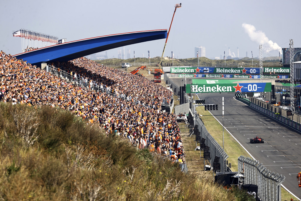 De tribunes zijn goed gevuld en overheersend oranje gekleurd. De organisatie mag bij het driedaagse race-evenement dagelijks 70.000 mensen toelaten, twee derde van de maximale capaciteit. Zaterdag is de kwalificatie, zondag de race.