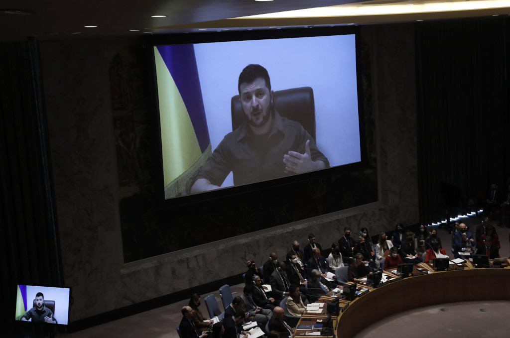 Zelenski sprak de raad gisteren toe via een live videoverbinding. Hij vergeleek de Russische militairen met IS-terroristen na de gruweldaden in Boetsja. Volgens hem zijn de oorlogsmisdaden die de Russen daar hebben begaan "de ergste sinds de Tweede Wereldoorlog".