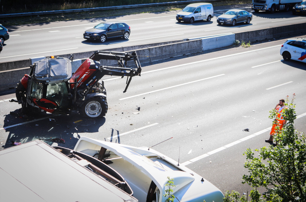 De Gelderlander meldde eerder dat de tractor zijn bak te hoog had hangen terwijl hij op de snelweg reed en daardoor tegen een brug knalde. Getuigen zeiden tegen de Gelderlander dat de vrachtwagen die vlakbij de trekker reed, moest uitwijken. Volgens hen zou de truck het landbouwvoertuig niet hebben geraakt.
