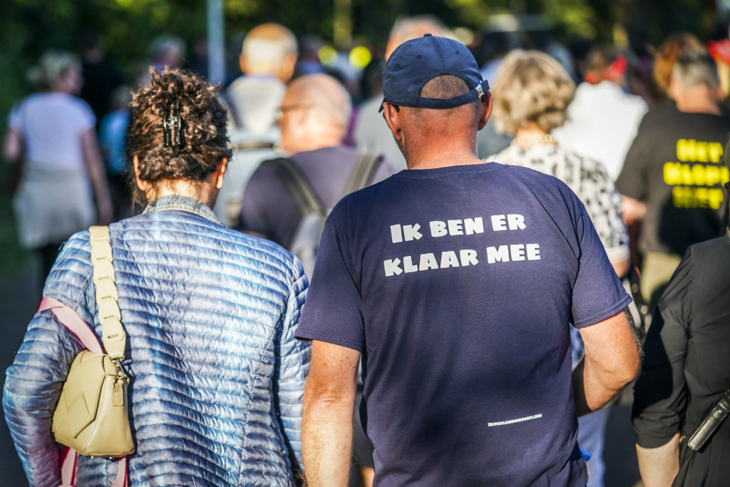 De demonstranten liepen de protestmars "tegen het regeringsbeleid" en "voor onze vrijheid", aldus Nederland in Verzet in de aankondiging van de demonstratie op Facebook.