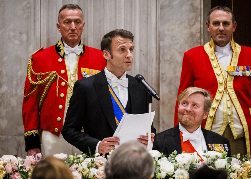 De Franse president Emmanuel Macron heeft gisteren een deel van zijn toespraak bij het staatsbanket in het Nederlands gehouden, nadat koning Willem-Alexander zijn toespraak in het Frans deed. Macron sprak daar zijn waardering voor uit.