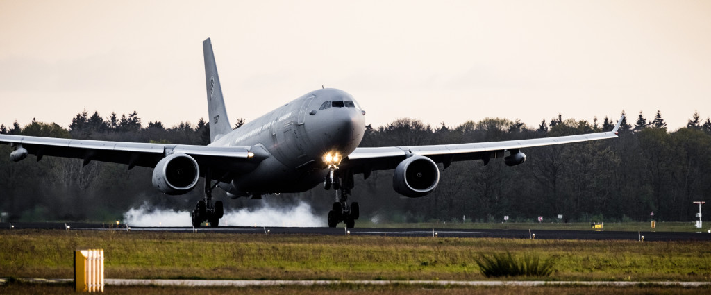 Dinsdagavond landde het eerste vliegtuig met evacués op de luchtmachtbasis in Eindhoven.