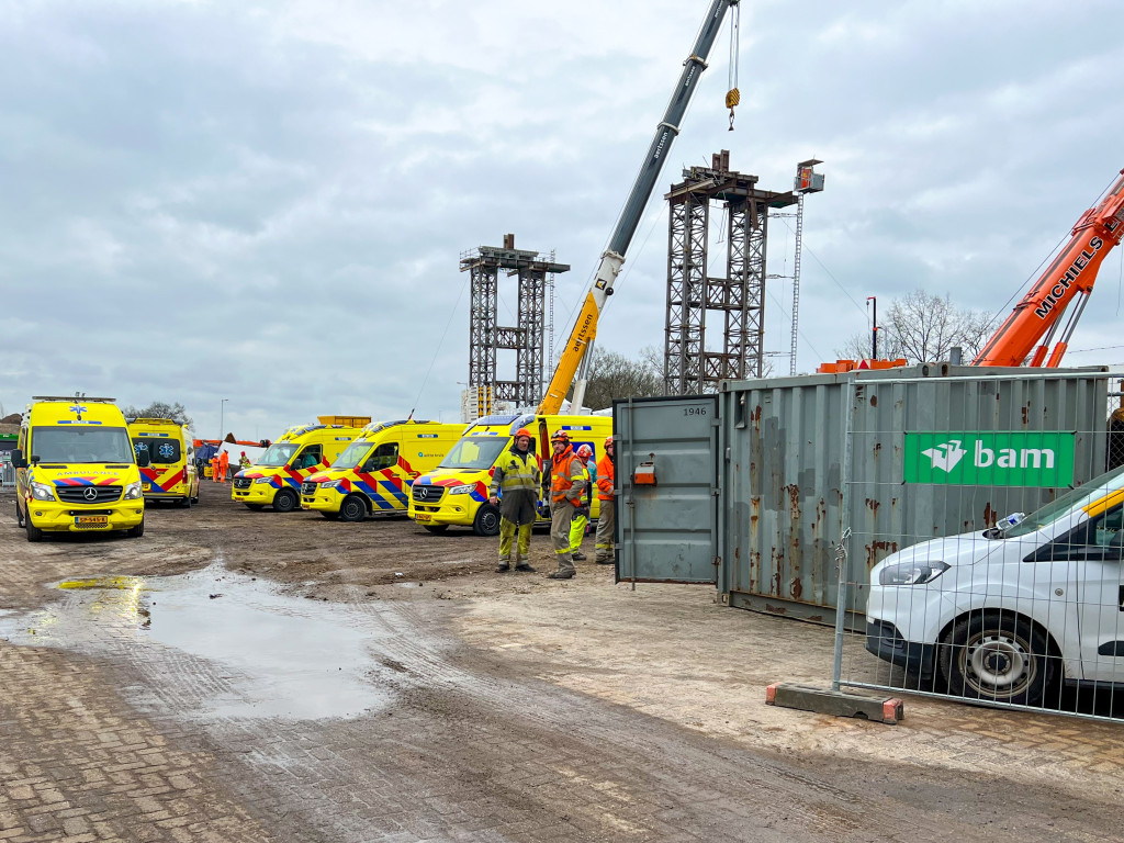 Volgens de veiligheidsregio hebben veel medewerkers het ongeluk zien gebeuren. Zij worden opgevangen bij een bedrijf in de buurt.