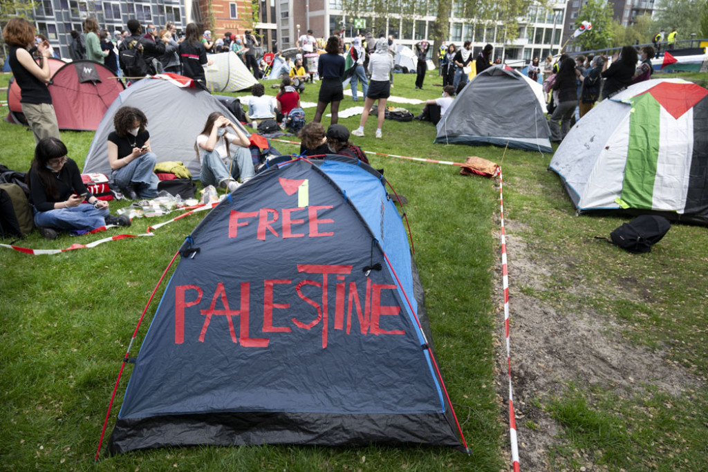 Pro-Palestijnse demonstranten zetten tenten op bij campus UvA