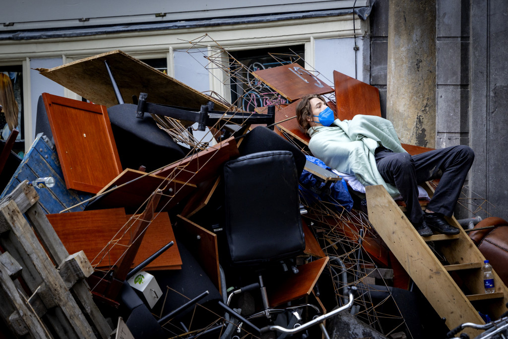 Actievoerders verhogen barricade bij bezetting UvA-terrein