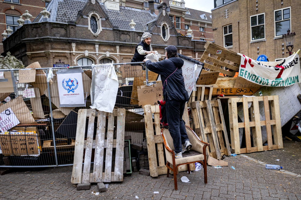 De demonstranten willen dat de universiteit alle banden met Israëlische instituten verbreekt. Sinds dinsdagavond blokkeren zij het terrein in het centrum van Amsterdam. Een deel van hen heeft daar ook de nacht doorgebracht. Maandagavond was er ook een demonstratie op de Roeterseilandcampus van de UvA. Dat protestkamp werd door de politie ontruimd.
