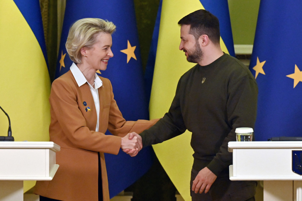 "Er is geen beter symbool of beter gebruik van het geld van het Kremlin, dan om hiermee Oekraïne en heel Europa veiliger te maken", zegt Ursula von der Leyen, voorzitter van de Europese Commissie.