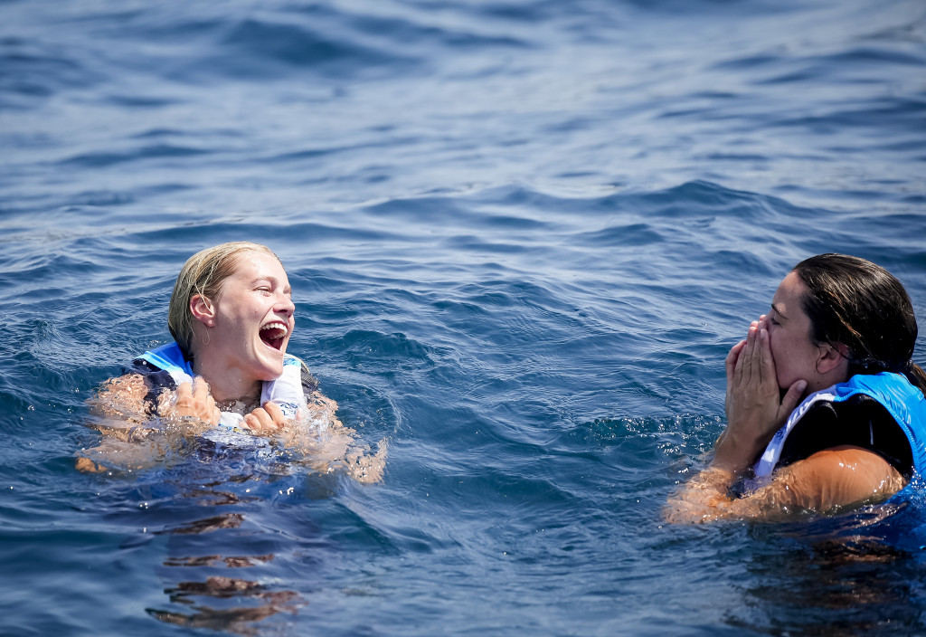 Van Aanholt en Duetz begonnen de medalrace, waarin dubbele punten verdeeld werden, op de tweede plaats. De Nederlandse zeilers hadden 1 punt meer dan de nummers 1 Sarah Steyaert en Charline Picon uit Frankrijk. De Françaises moesten uiteindelijk genoegen nemen met brons, achter Vilma Bobeck en Rebecca Netzler uit Zweden.