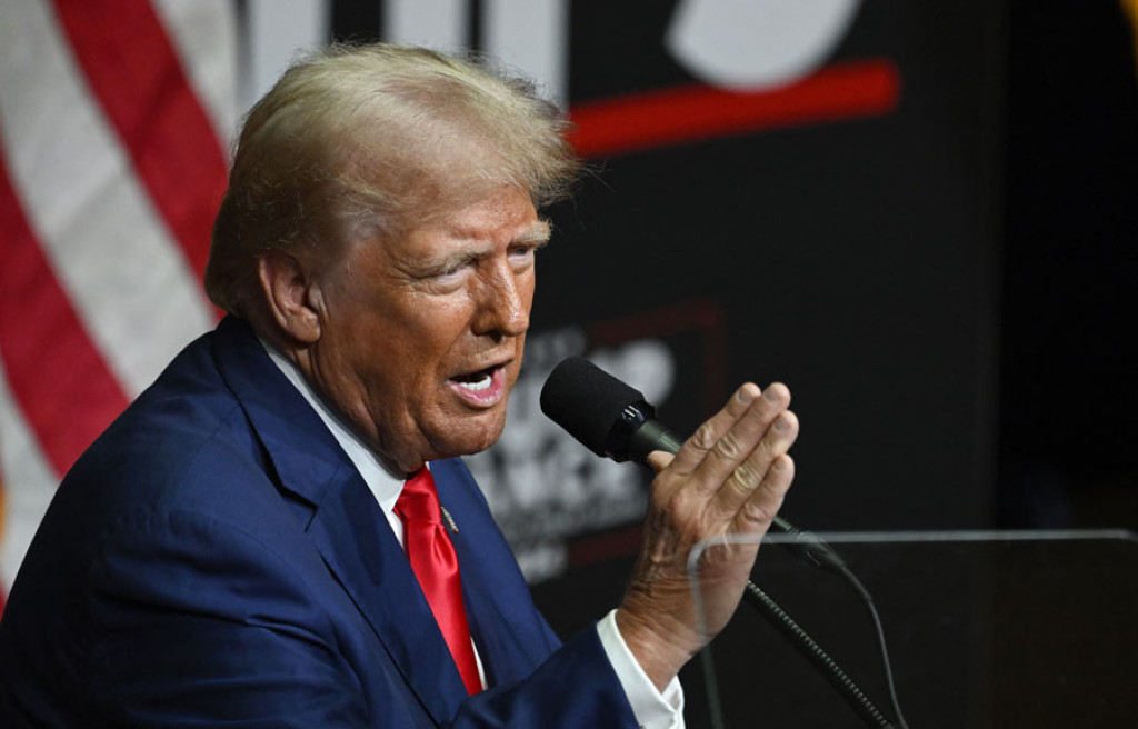 Donald Trump achter kogelvrij glas tijdens optredens buiten
