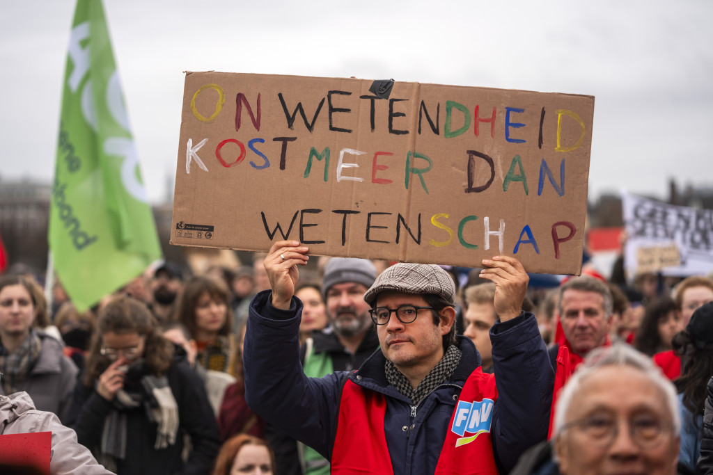 Maandag protesteerden studenten en medewerkers tegen de bezuinigingen in het hoger onderwijs, op het Malieveld en voor de deur van Bruins' ministerie.