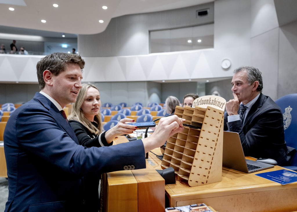 Het initiatief werd dinsdagmiddag tijdens het onderwijsdebat in de Tweede Kamer gepresenteerd. Kamerleden hoeven alleen hun telefoon in te leveren als ze dat zelf willen, benadrukte waarnemend Kamervoorzitter Tom van der Lee. "En hem wel graag echt uit te zetten, of op stil te zetten", vroeg hij de politici nog.
