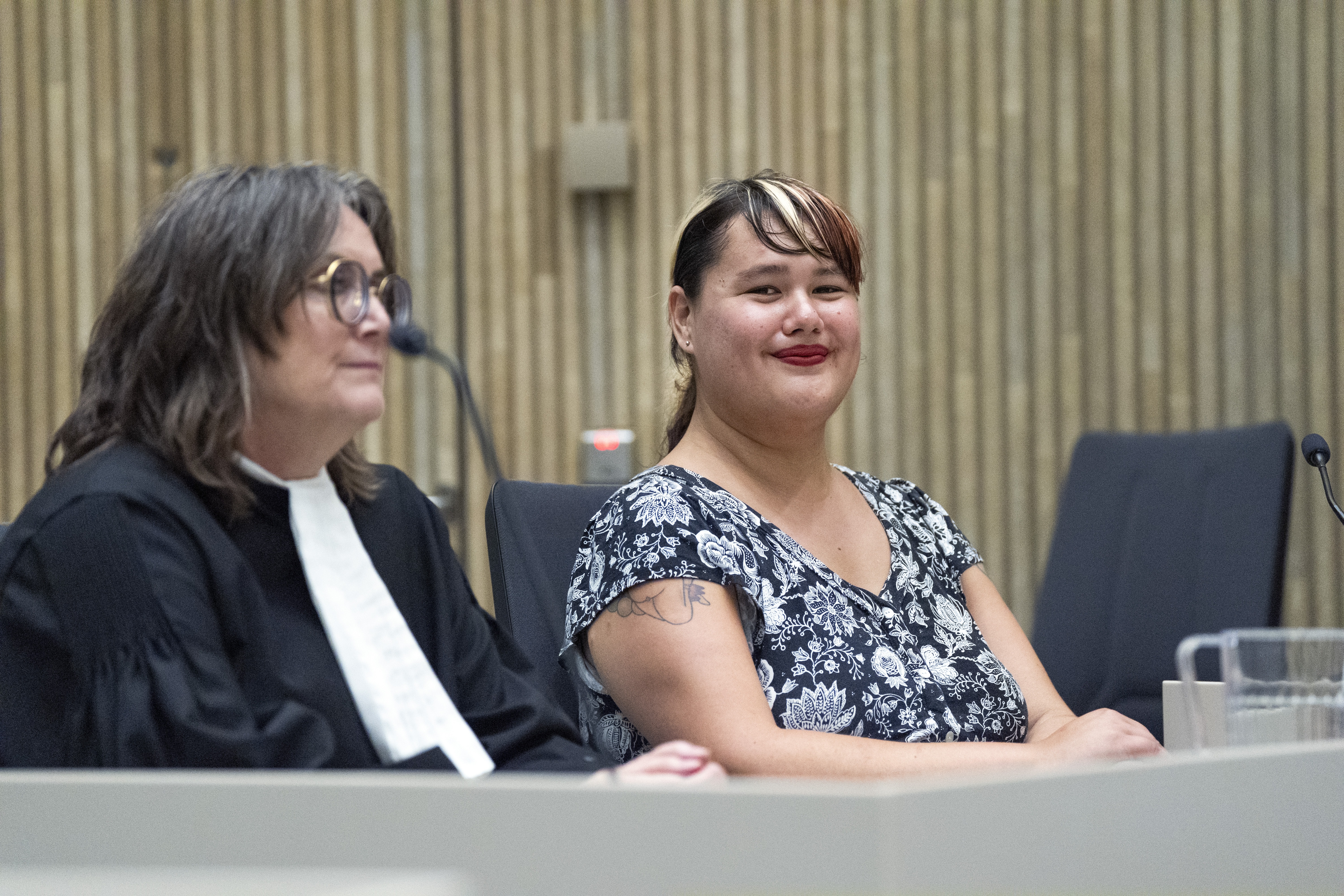Foto: Veronica Clifford-Carlos met haar advocaat Inge Zuidhoek in de rechtbank, waar haar afgewezen asielverzoek wordt behandeld.