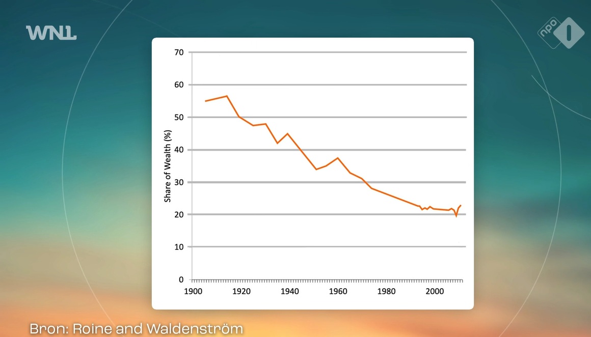 De journalist zet zijn betoog kracht bij met een grafiek. ''Je ziet over de langere termijn dat het aandeel van die rijke kakkers daalt vanaf het begin dat de welvaart een beetje begint te stijgen (1900, red.). Het is wél zo dat ze rijker zijn geworden. Dat is gewoon waar. Maar heb je er last van dat John de Mol meer geld verdient? Ik heb daar niet zoveel last van. Hij maakt bagger-tv, maar dan zet je hem niet aan.''