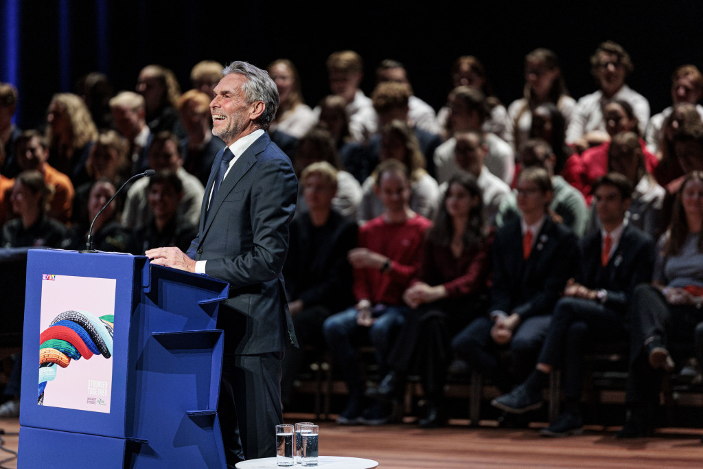 Twee demonstranten zijn in Enschede de zaal uitgezet. Na de eerste onderbreking kregen ze eigen spreektijd aangeboden na de toespraak van Schoof. Kort keerde de rust terug, maar na een tweede verstoring werden ze onder lichte dwang de zaal uitgezet door beveiligers, zag een ANP-fotograaf. Schoof vervolgde daarna zijn toespraak.