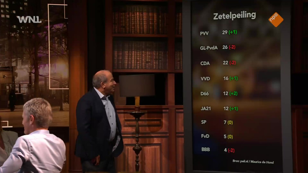De Hond stemt met Kockelmann in. "En wat ook nog wat interessant is, is dat hoe hoger de PVV komt, hoe moeilijker het wordt het kabinet te vormen." Nu de VVD en het CDA een samenwerking met de PVV recent hebben uitgesloten, blijven er maar weinig partijen over die een coalitie met de PVV zien zitten. "Maar het aantal zetels dat voor hen overblijft, is kleiner", aldus De Hond.