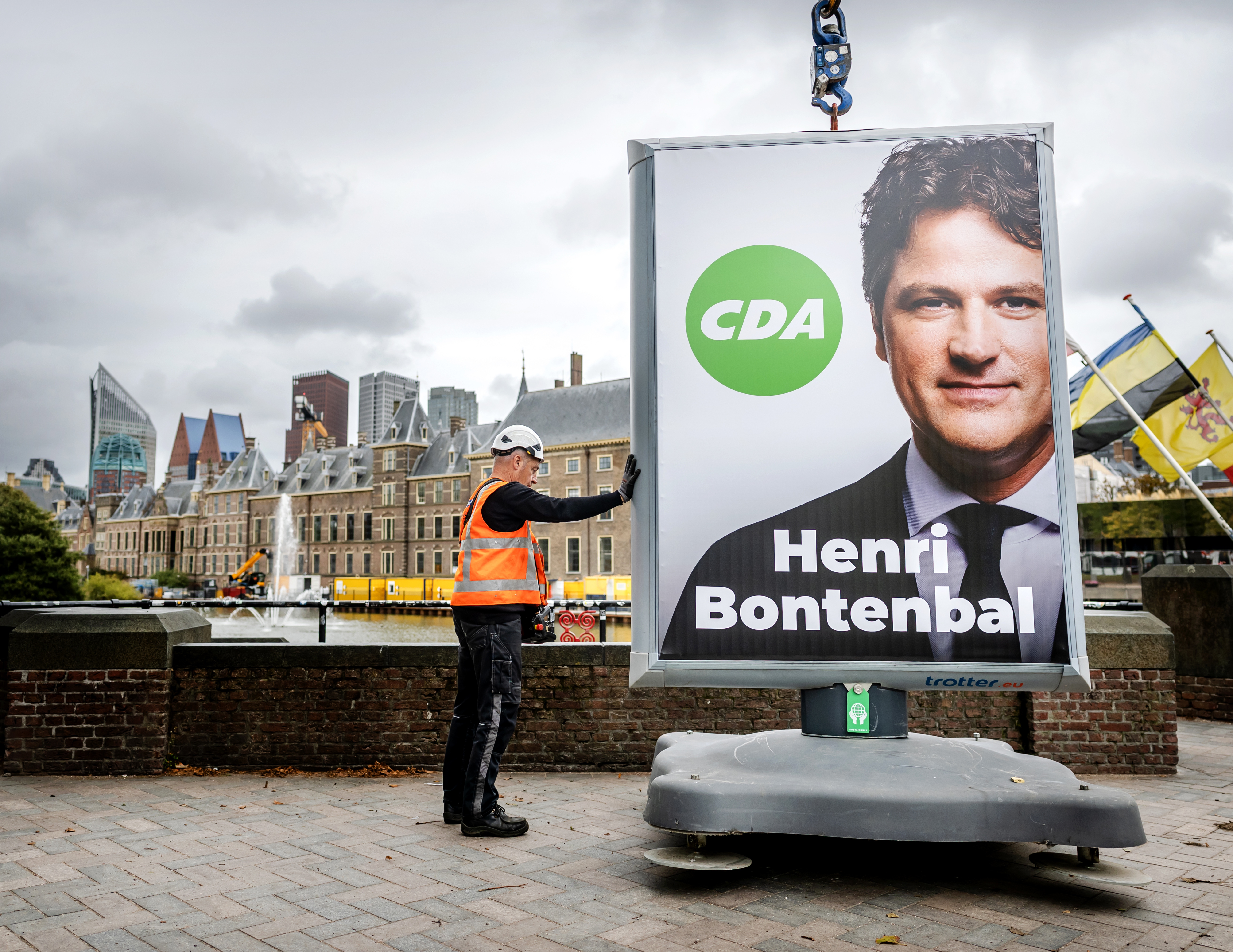 Wilders wijst naar de kiezer. 'DIT IS UW LAND', staat groot afgedrukt op de verkiezingsposter van de PVV. 'Samen vooruit', adverteert GroenLinks-PvdA zonder foto. VVD gaat voor eenzelfde aanpak, maar dan minimalistischer. 'Kies VVD', staat op het affiche. CDA denkt dat alleen een foto van partijleider Henri Bontenbal en zijn naam de kiezer over de streep trekken.