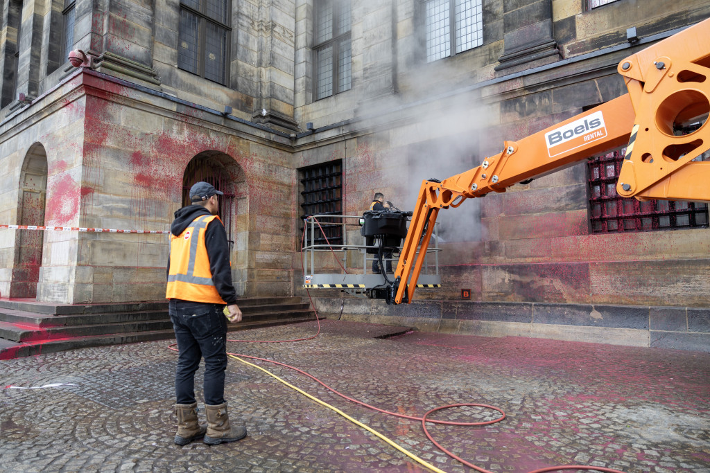 Het Koninklijk Paleis op de Dam is deels beklad met rode verf, is te zien op webcambeelden van het Amsterdamse plein. Palestine Action NL claimt dit dinsdagochtend te hebben gedaan "als reactie op het verbod van de burgemeester op de Nationale Herdenking voor Palestina".