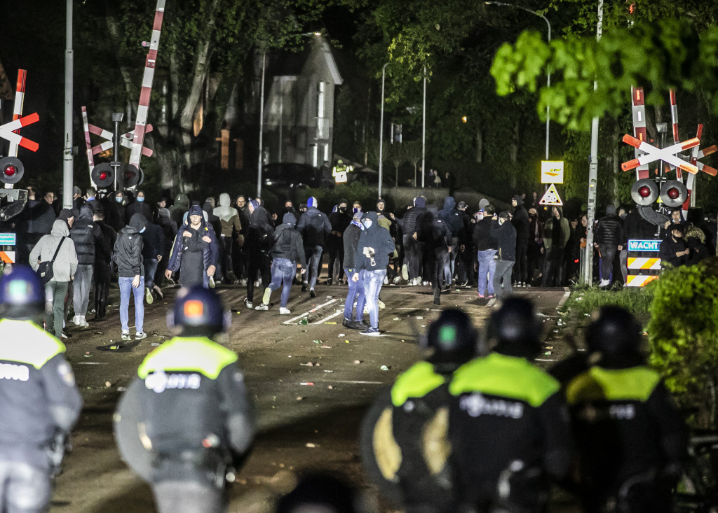Vijf mannen werden opgepakt, van wie er een minderjarig is. De vier anderen zitten vast en staan woensdag terecht. De rechter doet in de loop van de middag uitspraak. De officier van justitie noemde het geweld zeer ernstig. "De politie werd aangevallen, vreedzame betogers konden hun stem niet laten horen en het democratisch proces werd door dit geweld ondermijnd."