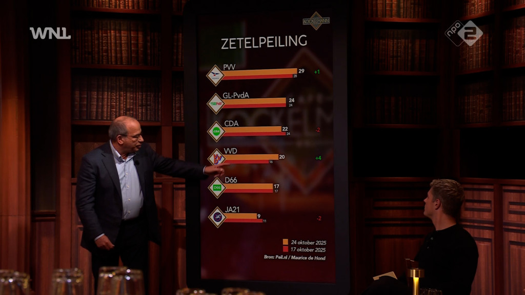 Foto: Zetelpeiling Maurice de Hond van 24 oktober 2025. Let op, artikel gaat verder onder de foto.