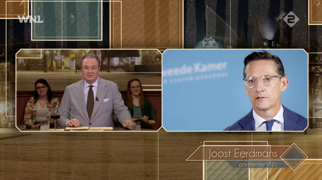 Eerdmans benadrukt dat voor zaken die voor JA21 pijn doen, betaald zal moeten worden. "Wij gaan niet zomaar moties van wantrouwen steunen of de boel opblazen. Dit land moet vooruit, daar ben ik het echt mee eens. De vraag is wel: als jij ons vraagt voor steun, dan is de prijs afhankelijk van wat ze ons bieden. Maar het is niet zo dat we gaan tegenstemmen om het tegenstemmen. Als ze JA21 nodig hebben, willen we daar serieus naar kijken."