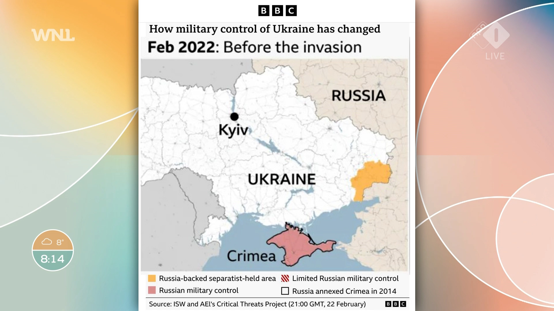 De situatie voor de oorlog was als volgt: de Krim was door Rusland geannexeerd in 2014 en in de Donbas, het uiterste oosten van Oekraïne, woedde al sinds april 2014 een oorlog.