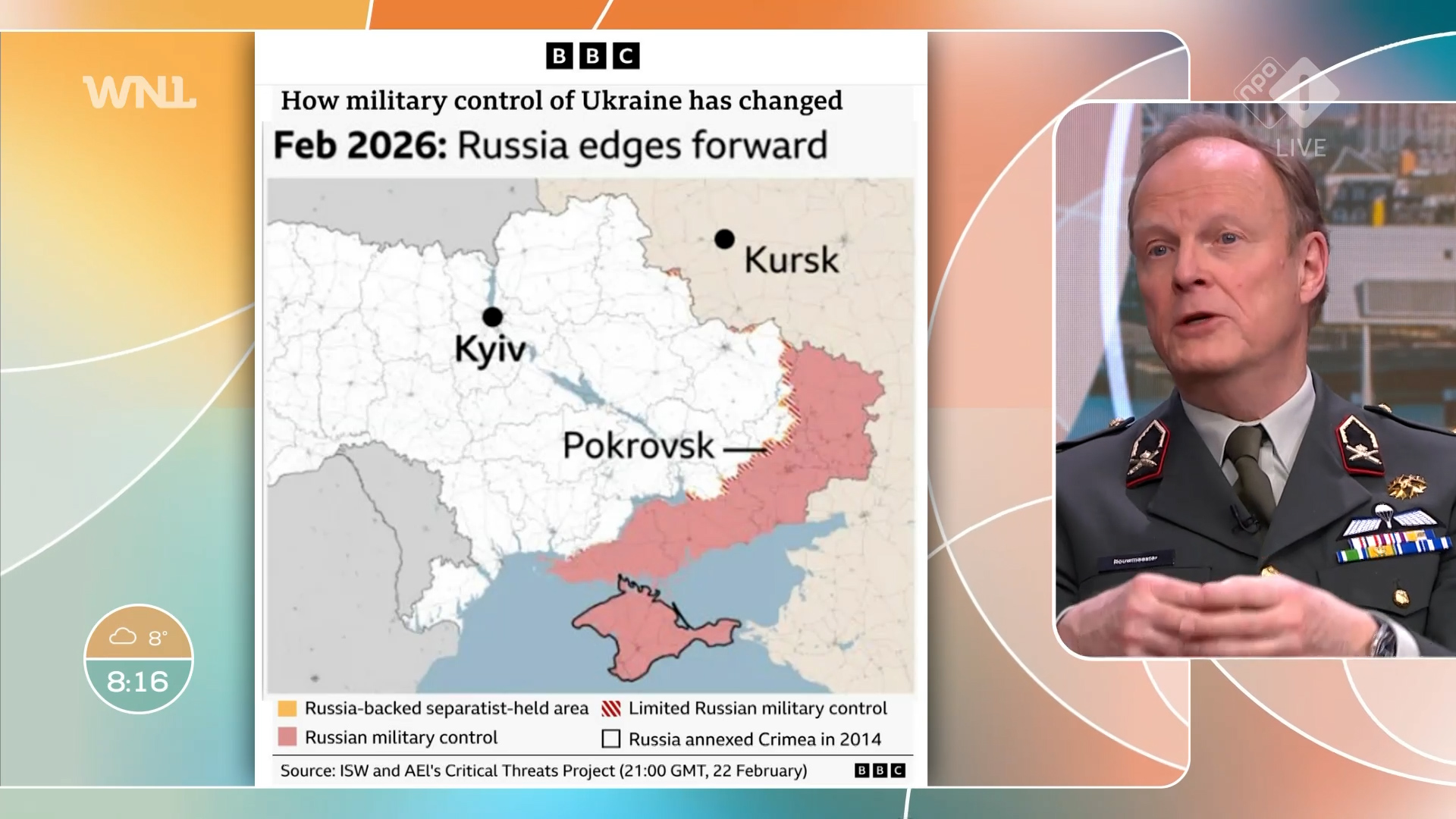 "Maar sinds november 2022 tot aan nu zie je een veel statischere oorlog ontstaan." Sterker nog, er is al jarenlang een patstelling, waarin het front weinig beweegt en er weinig terreinwinst wordt geboekt door zowel de Oekraïners als de Russen.