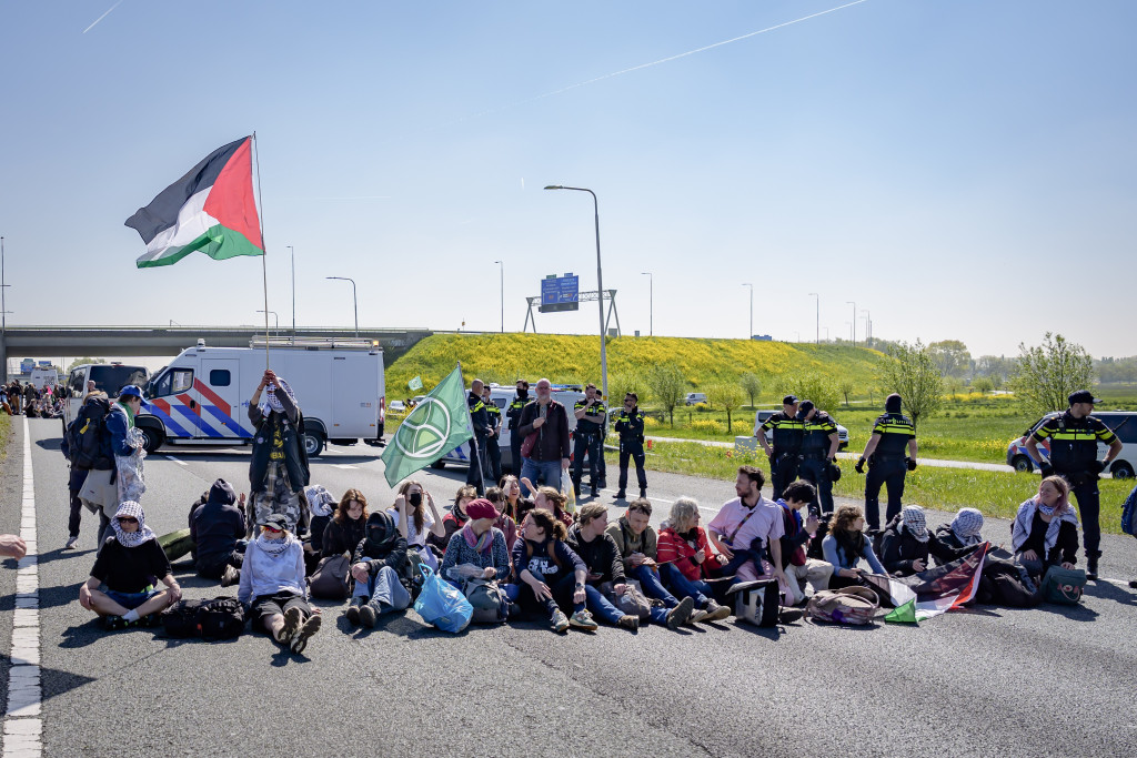 Enkele actievoerders hebben zich vastgeketend aan de vangrail, ziet een ANP-verslaggever. Bij deze mensen doet de politie pogingen om ze los te krijgen door de vangrail los te schroeven.